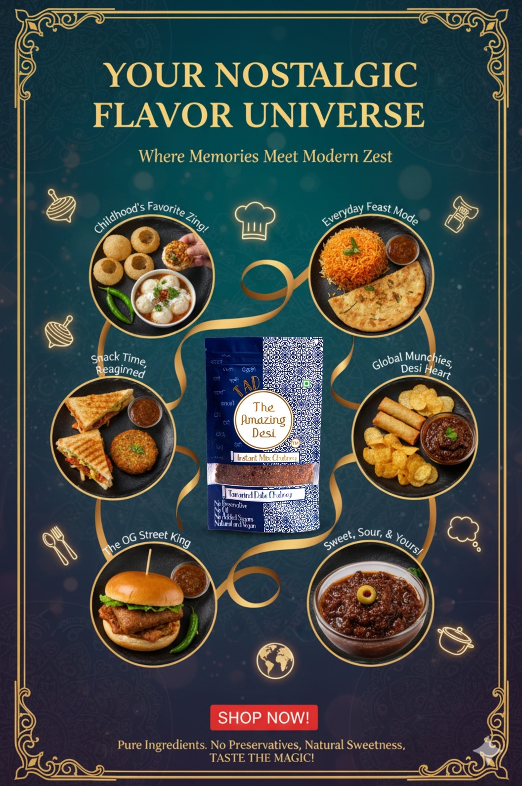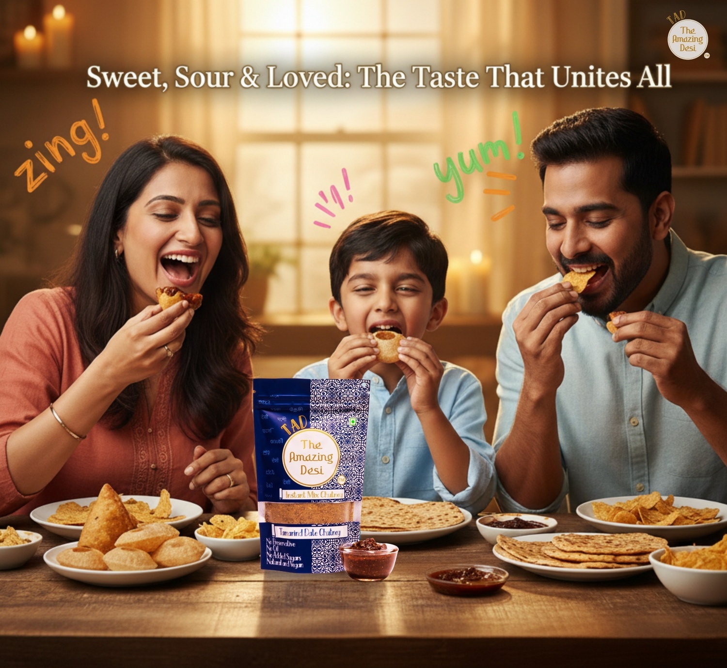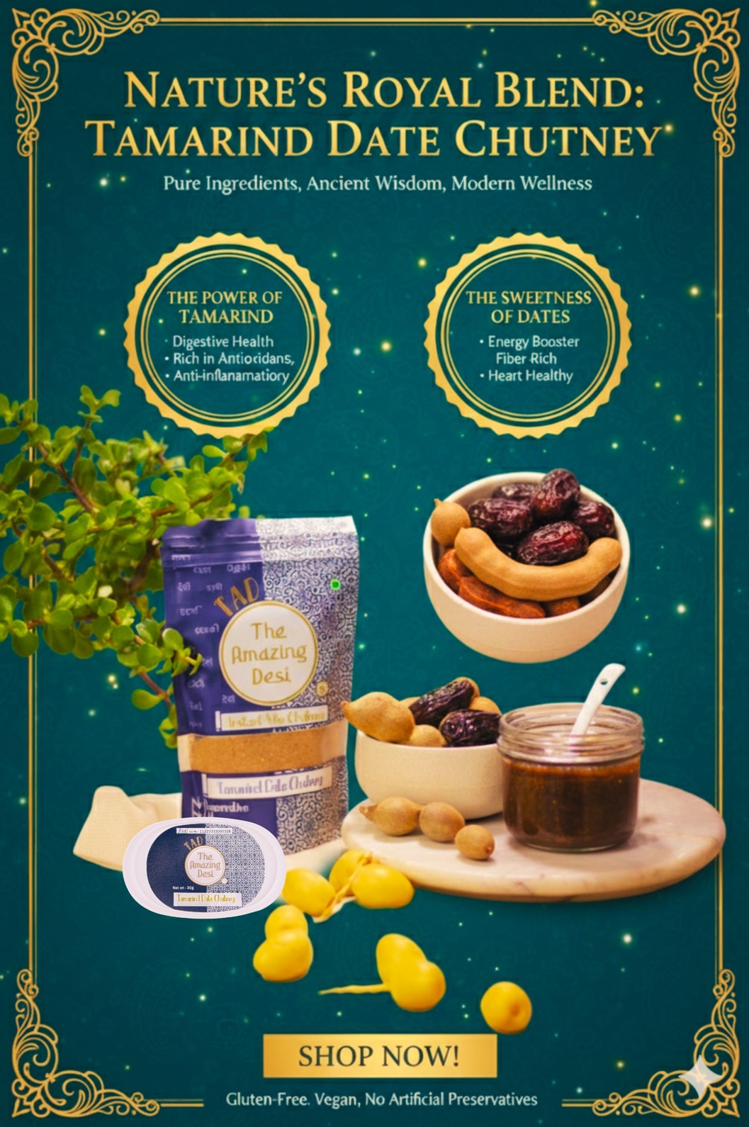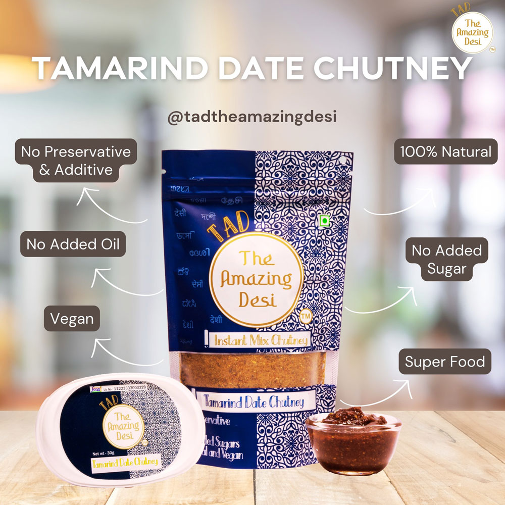 TAD Tamarind Date Chutney is a cherished traditional Indian recipe, celebrated for its distinctive flavours and versatility in both sweet and savoury dishes. Explore its endless culinary pairings – from Samosas, Pakoras, and Chaats, the quintessential street food, to the flavour-enhancing Biryani. The chutney delights with its sweet and tangy notes, heightened by the subtle kick of Kashmiri red chili. Beyond taste, it offers notable health benefits, with tamarind’s antioxidants neutralizing free radicals, Dates contributing to energy and digestive health, Jeera aiding digestion, and Kashmiri red chili potentially boosting metabolism. A captivating taste experience, blending harmoniously in every way.