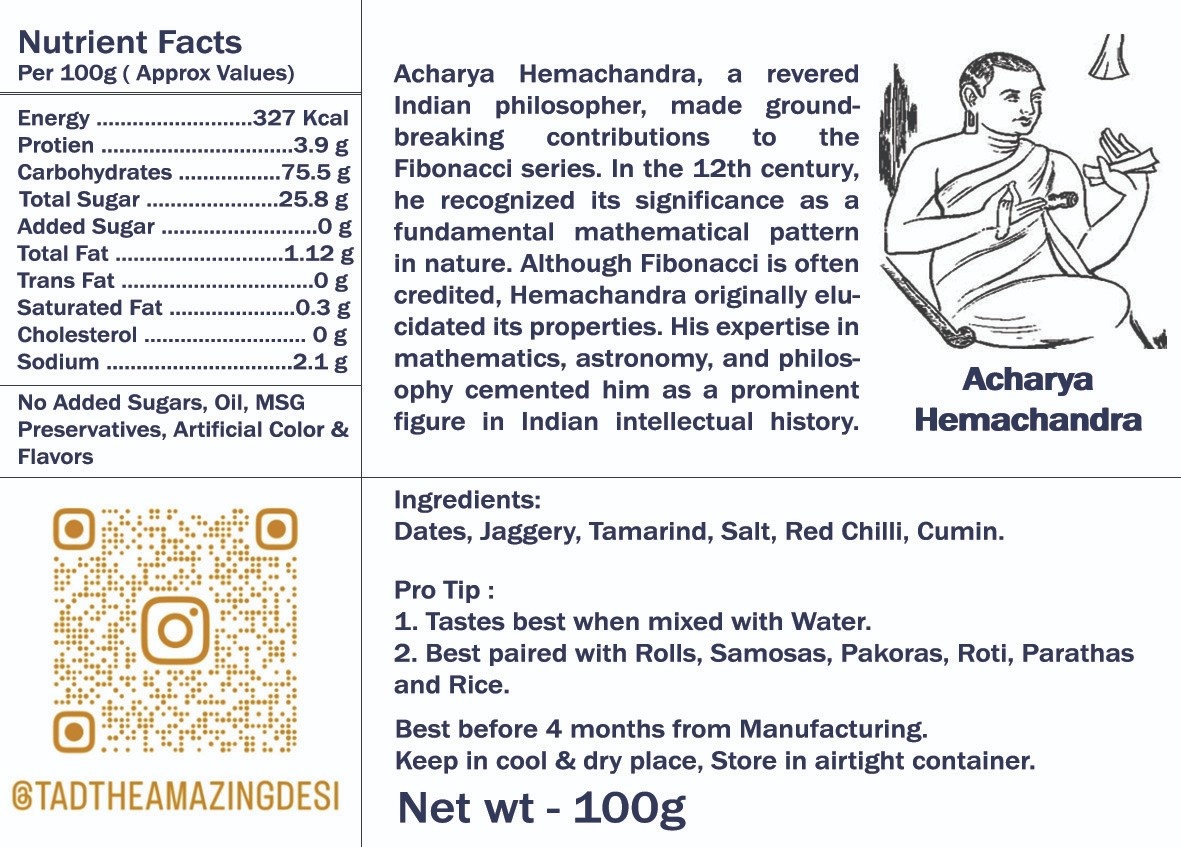 Tamarind, Dates, Salt, Red Chilli, Jaggery, Cumin